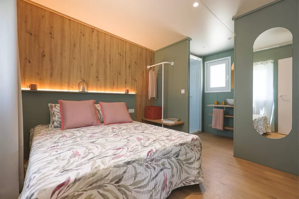 Découvrez notre mobil-home de 35 m², La Vallée de la Durance, conçu pour vous offrir confort et intimité. Il dispose de deux chambres de type suite, chacune avec sa salle de bain intégrée, pour un séjour en toute tranquillité.